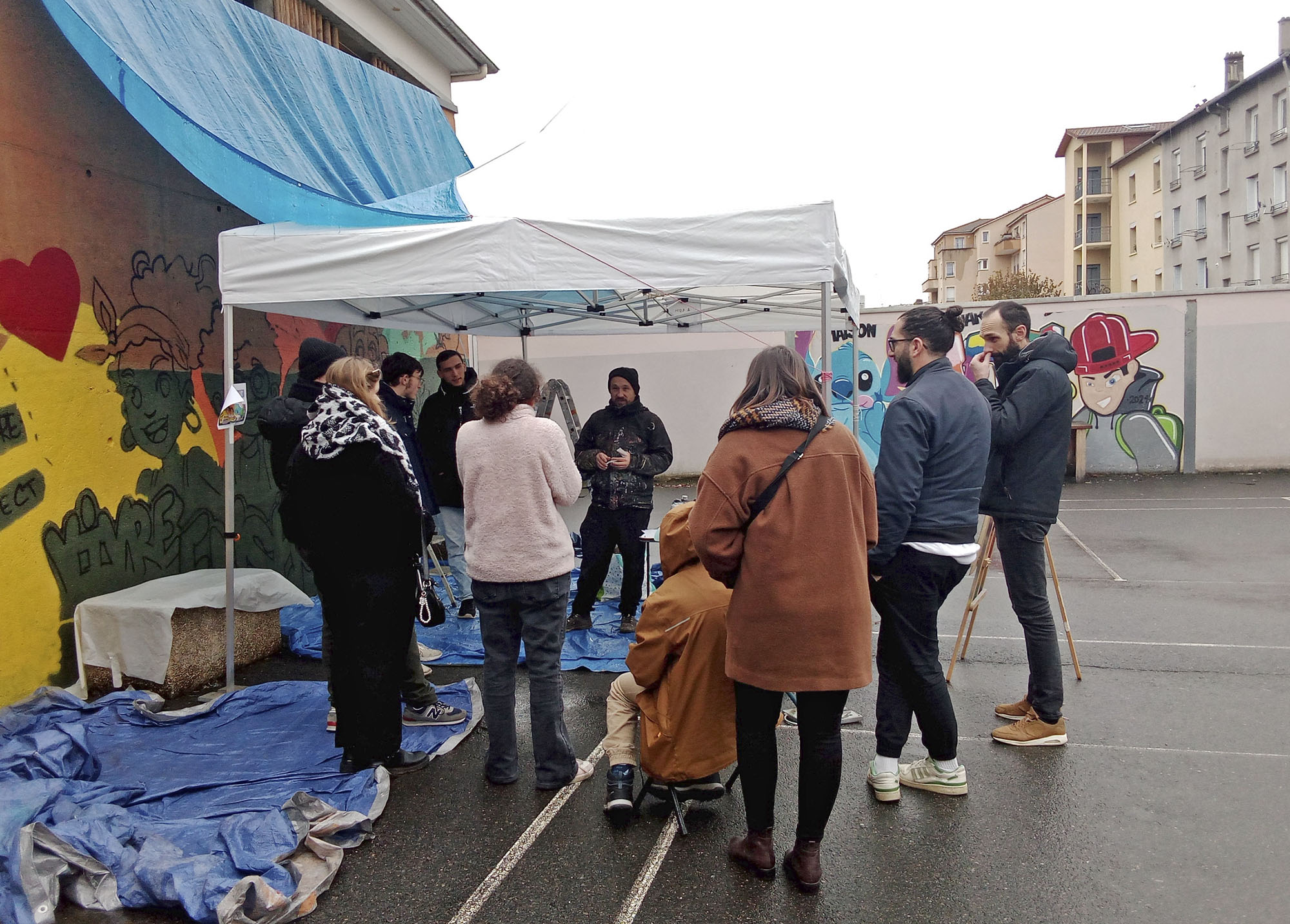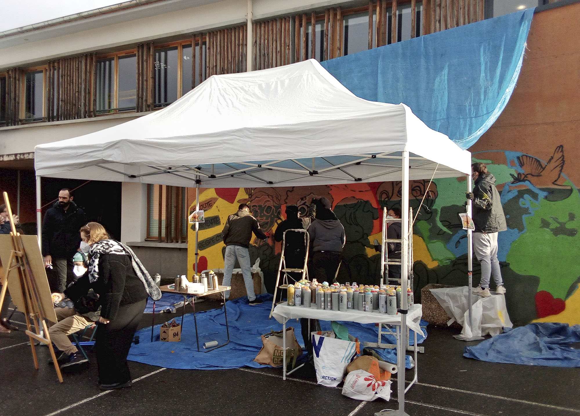 L’artiste Sare Decor a réalisé une fresque participative à la bombe sur le mur de la Maison du Quartier du Soleil à Saint-Étienne, une œuvre commune qu’il a conçue avec les habitants du quartier. La fresque porte le thème essentiel de la laïcité, un concept fondamental qui prône la coexistence pacifique et le respect des différences.